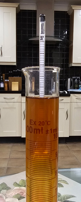 The OG was 1.046, exactly as specified by the recipe and the colour (which always looks lighter in the sample jar) shows signs that it will be a nice chestnut brown by the time it's fermented and conditioned. The sample jar tasted great, with a real rounded sweetness together with toffee flavours from the crystal malt.
